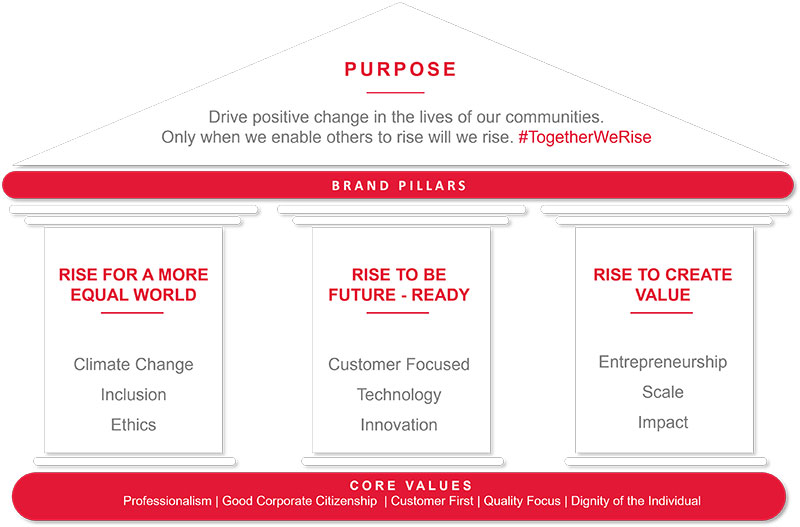 The success of a company is recognised by its values, purpose and vision. Success is only possible when it is driven with the purpose to create a change, something that will positively impact the well being of not only the company itself but also the end consumers. And when the community and the company work on building a sustainable, result-driven front, it RISES.
